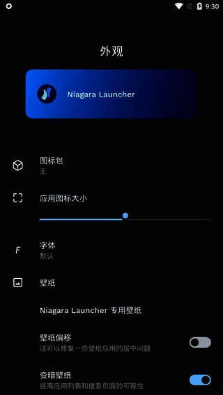 5.在壁纸设置中可进行偏移、变暗、纯黑等操作。