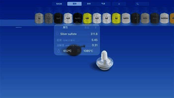 3、在化学材料的选择上,提供了有机物、固体、液体、气体等不同选项供大家挑选;