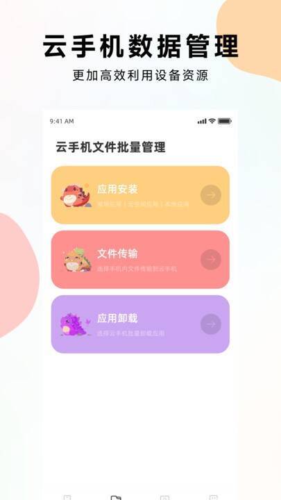 1、跨平台使用:支持多平台下载使用,不管是安卓系统还是苹果系统,都能轻松搞定。用户可以在手机、平板、电脑等设备上随时随地管理自己的云手机,不受设备限制。
