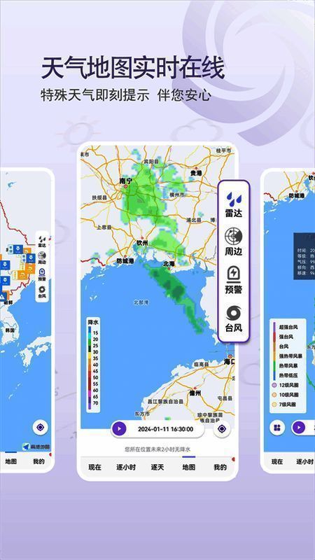 - 天气地图:包含雷达回波、实时闪电定位、台风路径图等,直观易懂。