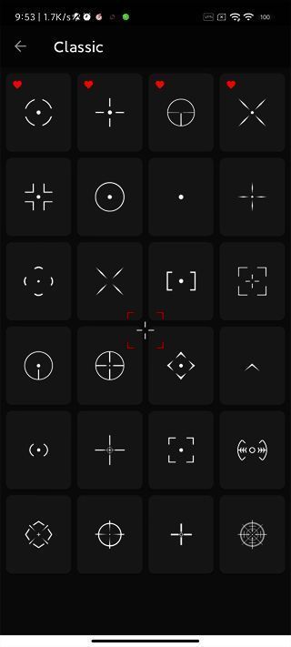 4、能看到众多不同类型的准星,只需按自己喜好选择即可。