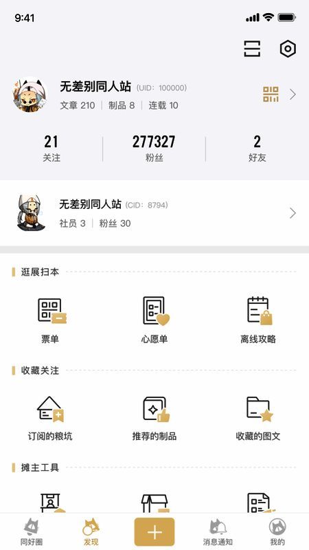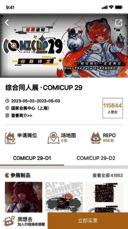 该平台能让你发现和探索作品与展览,制定购买计划、制作展览指南,为粉丝搭建自由交流空间。它提供全国同人产品与展会信息检索、票务、摊位申请等服务,也为展会组织者提供摊位审核、数据收集等服务。
