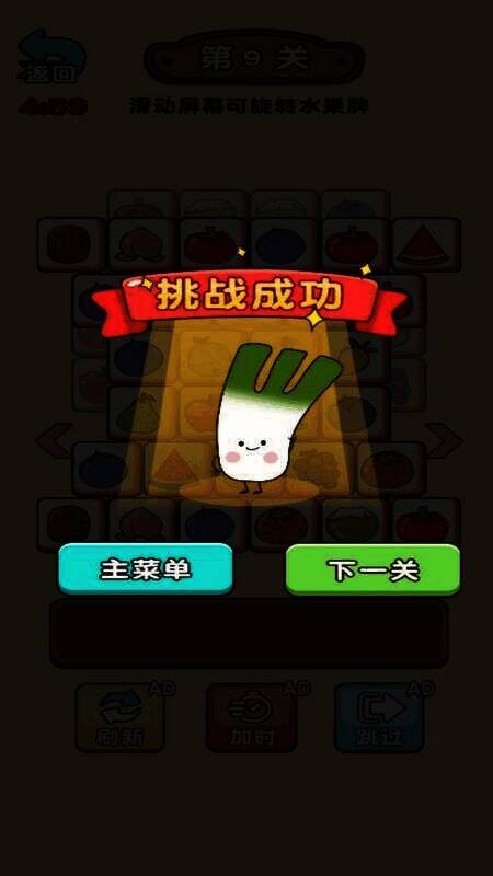3. 通过滑动或轻敲消除相同颜色水果来迎接挑战。