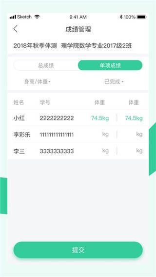 2. 在体质测试中填好学校名称、姓名、职务、手机号码,点击提交即可查看体测成绩。