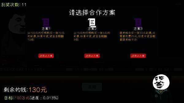 此版本为《中国式网游》彩票DLC的移植版本,也叫中国式网游彩票模式老王的逆袭。游戏新增10余张不同面值和玩法的刮刮乐,玩家从100元初始资金起步,通过刮彩票赚100万,体验从屌丝到大佬的乐趣。有大灌篮刮刮乐、欢乐3个8等多种彩票类型,购买花费不同。