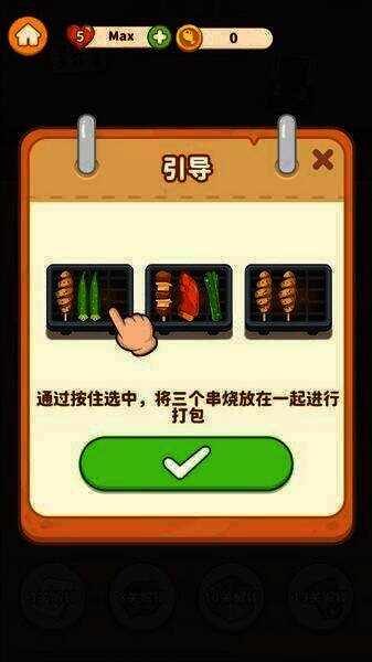 游戏基本玩法是按住选中,将三个串烧放一起打包。