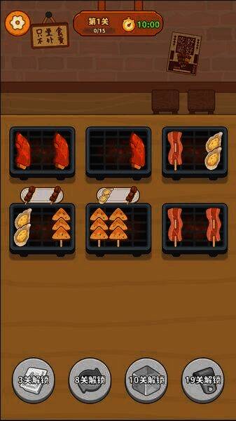 点击并按住选择相似烧烤食材,把三种相同食材移到同一烧烤架消除。依据每个级别的具体目标,在进入下一级前,消除相应成分并成功消除所有必需食物。完成关卡可解锁更多道具,合理使用道具能协助后续关卡消除,提高通关效率。开始每一级前,仔细观察目标,优先消除相关成分,避免盲目操作。