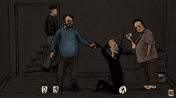 2、进入游戏后,场景中有足印和手掌标识,点击手掌可与人物对话、拿取物品,足印用于对话完成后进入下一个剧情;