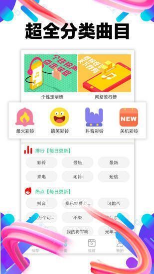 2. 为用户轻松提供丰富多彩的音乐和铃声资源,可依据不同场景和情况选择合适铃声。