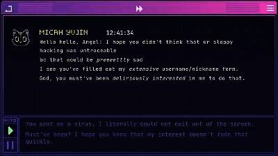 Error143是一款极具品质的恋爱类剧情互动手游,它以独特的二次元画风呈现,围绕黑客主题展开。玩家将化身黑客少女,在黑客比赛中输给男主角Micah Yujin后,不服气地入侵其电脑却反被入侵。随着一次次暗地较量,两人开始网聊并渐生情愫,最终奔现。游戏拥有3种结局,包括好、坏及隐藏结局,剧情时长可达3小时。玩法独特有趣,欢迎下载体验!