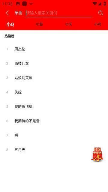 2. 支持在线搜索音乐,用户根据歌曲名称、歌手名称或专辑名称能快速找到想听的音乐并在线播放。