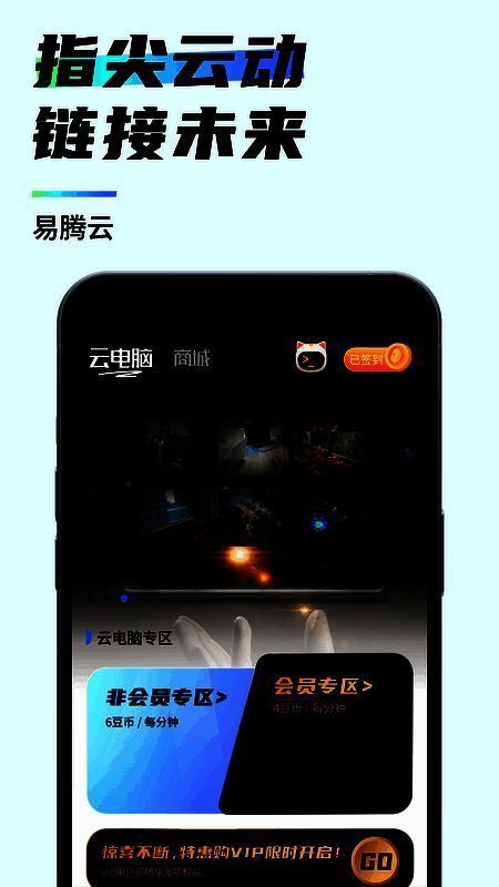 易腾云2025最新版是一款强大的跨平台综合软件,它集高性能、多元化社区与便捷学习办公功能于一体。为用户提供云电脑、远程办公、云娱乐、云存储等服务,让大家随时随地享受游戏和办公乐趣,摆脱低配置硬件的限制。