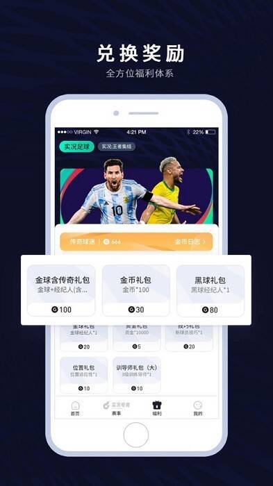 能用金币免费兑换游戏礼包,培养球员成巨星;有完整会员增长系统,游戏动作增加积分;用户可自由交流足球话题。