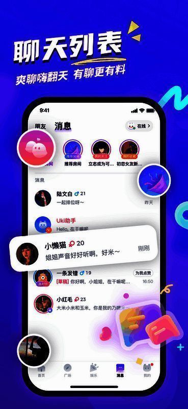 在Uki里,你能结识形形色色有趣的小伙伴。他们当中,有的幽默风趣,几句话就能把你逗得哈哈大笑;有的才华横溢,无论是文学创作、艺术绘画,还是科技前沿话题,都能和你畅聊不停;有的温暖善良,会耐心倾听你的烦恼,给你最贴心的安慰与建议。在这里,你可以自由分享生活中的点点滴滴,无论是开心趣事、烦恼琐事,还是内心深处的梦想与渴望,都能找到愿意倾听的人。