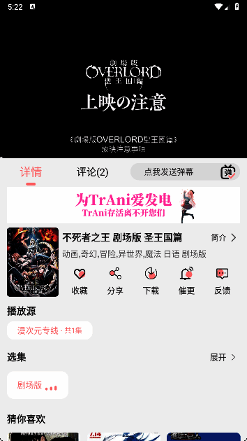 TrAni动漫2025最新版,专为动漫爱好者量身打造。这里汇聚了国漫、日漫等海量动漫资源,每日实时更新。丰富多样的动漫类型,全方位满足你的需求。而且所有资源统统免费,让你沉浸在舒适的二次元观影世界。你还能在这里找到志同道合的朋友,加入兴趣社团畅快聊天,从此看动漫不再孤单。每周详细的番组表,让本季新番一个都不错过。赶紧下载TrAni动漫2025最新版吧!