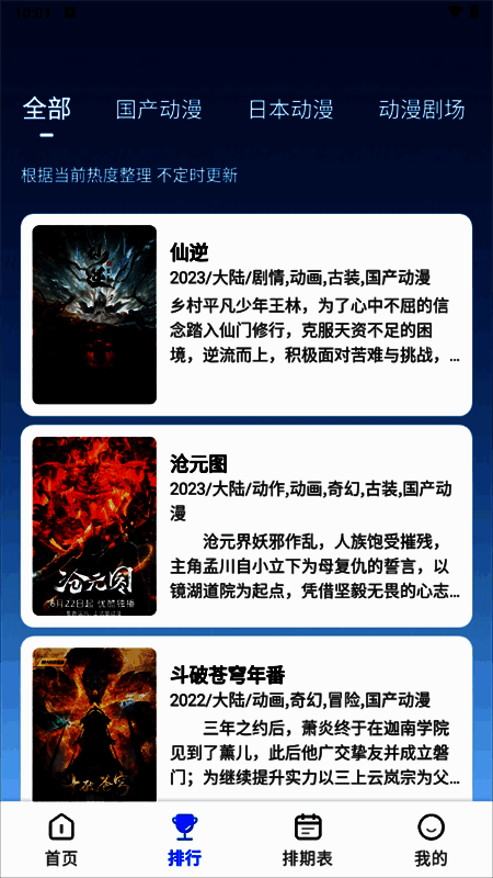 4. 热门推荐:实时更新热门动漫及排名,让用户了解行业趋势,发现更多佳作。