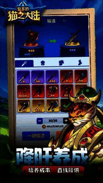 1、猫角色设计独特,能与秦始皇、关羽等史诗英雄搭配出独特冒险阵容。
