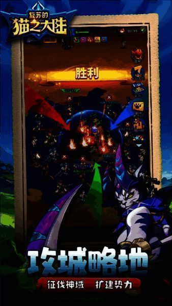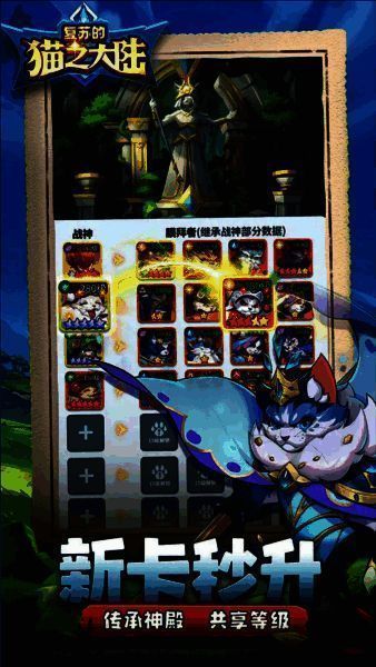 1、六个阵营近100名猫英雄共享升级机制,无方向卡限制。