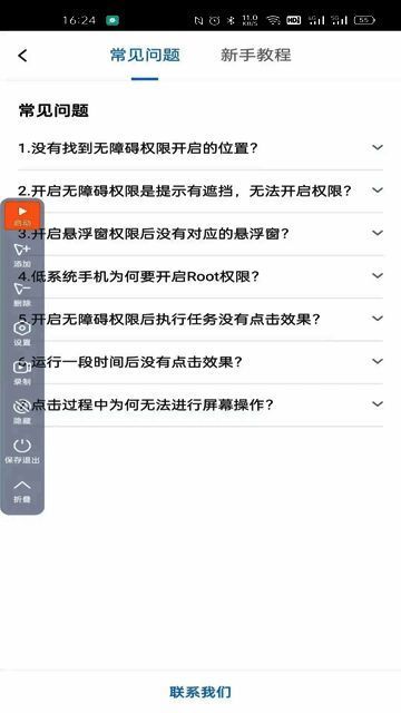模拟点击基于安卓7.0以上的无障碍权限运行,安卓5.0、6.0系统的设备只能获取应用内的无障碍权限,无法在其他应用中使用连点器。低系统用户可通过开启Root权限获得完整操作权限,开启方法可参考某度。