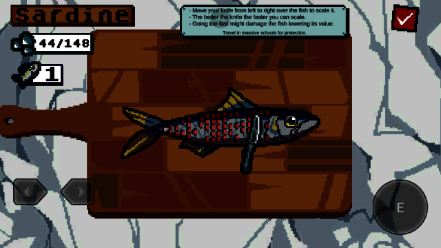 3、把捕到的鱼带到沙丁鱼站刮鱼鳞,完成后按右上角按钮确认。