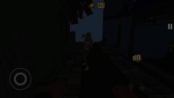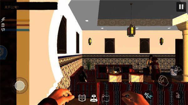4、左下角的摇杆用于控制方向,右下角的上下箭头分别对应跳跃和蹲下。