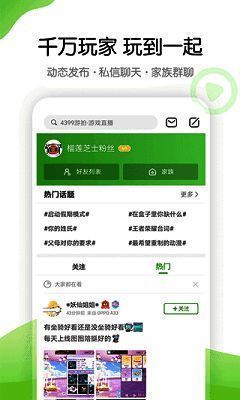 4399游戏盒采用轻量化设计,带来良好的用户体验。用户能在游戏圈内与好友互动、讨论、求助,展现个人风格,还能一键安装优质游戏。