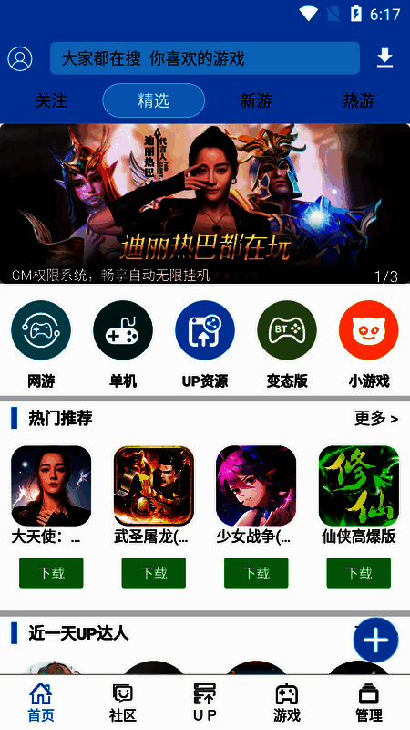 4、若想找到特定游戏应用,也需点击“up”功能按钮。