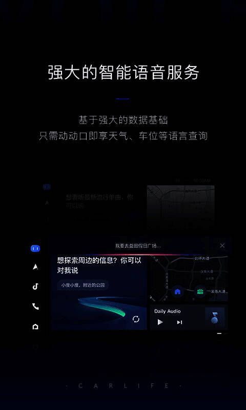 车载百度 CarLife 免费版是一款极具实用价值的智能汽车驾驶辅助软件。它拥有强大的汽车连接系统,用户能快速连接汽车,共享屏幕信息、监控汽车数据。只需在车内连接手机,就能在车内屏幕享受 CarLife 的汽车生活服务,开启免费智能驾驶体验。