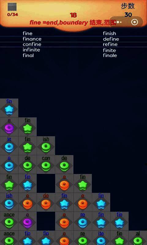 甜蜜英语消消乐是一款将经典三消玩法与英语学习巧妙融合的益智游戏。玩家通过交换字母或单词位置,把至少三个相同的连成一线来消除,以此完成关卡目标,提升英语水平。