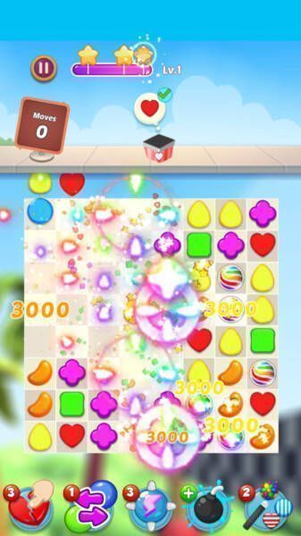 1、清新可爱画面,色彩缤纷的糖果搭配美丽背景,让玩家沉浸甜蜜游戏世界。