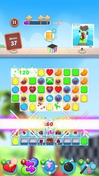 玩家交换相邻糖果,组成三个及以上同色糖果消除,每次消除可获分数和奖励。每关都有明确目标,如消除特定数量糖果、收集特定物品或打破障碍,玩家需依目标规划策略。游戏中有彩虹糖果、爆炸糖果等特殊糖果,还有锤子、炸弹、魔法糖果等强力道具,可助玩家完成任务、突破难关。