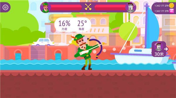 《弓箭手们》是一款抽象风格的横版动作射击手游。游戏采用2D横版屏幕呈现,其画风卡通可爱,搭配扁平画风与鲜艳明亮的配色,极具吸引力,再加上慷慨激昂的游戏音乐,能为玩家带来沉浸式体验。玩法是简单的抛物线形式,容易上手,但因不同角色拥有稀奇古怪的道具而增添了复杂度。