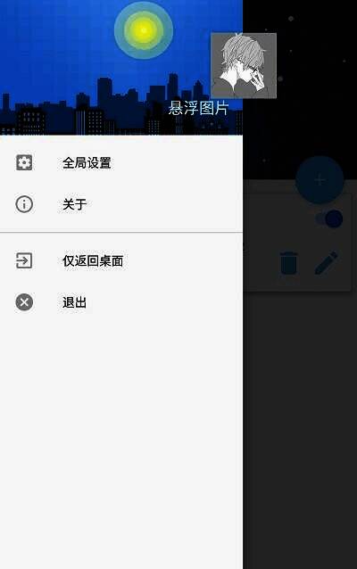 悬浮图片软件 app 支持图片悬浮桌面,美化屏幕,可定制启动系统并自动启动。支持多种图片格式,操作简单。窗口有透明背景,放置透明图片不妨碍触摸操作,图片数据存于存储目录文件夹。