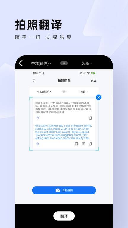 2. 图像翻译:支持图像文本翻译,用户拍照或上传图片,软件自动识别并翻译文字。