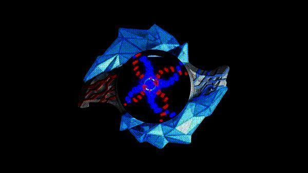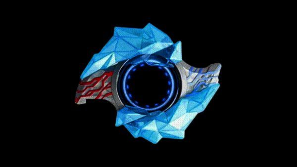 5、变身时,中间水晶展开露出显示屏,有红色和蓝色圆圈旋转,不同晶石特效不同。