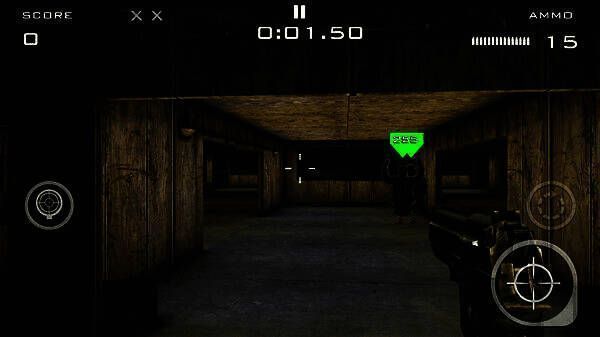 2、射击方向控制:通过左侧屏幕摇杆控制射击方向,尽量瞄准敌人头部,可一枪致命并获得分数加成。
