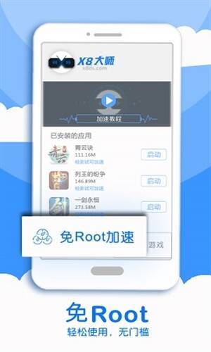 1、安装与启动:首先,要确保您的手机已经安装了x8加速大师。启动应用后,选择想要加速的游戏,点击“加速”按钮即可。