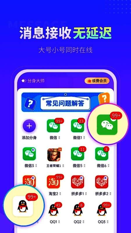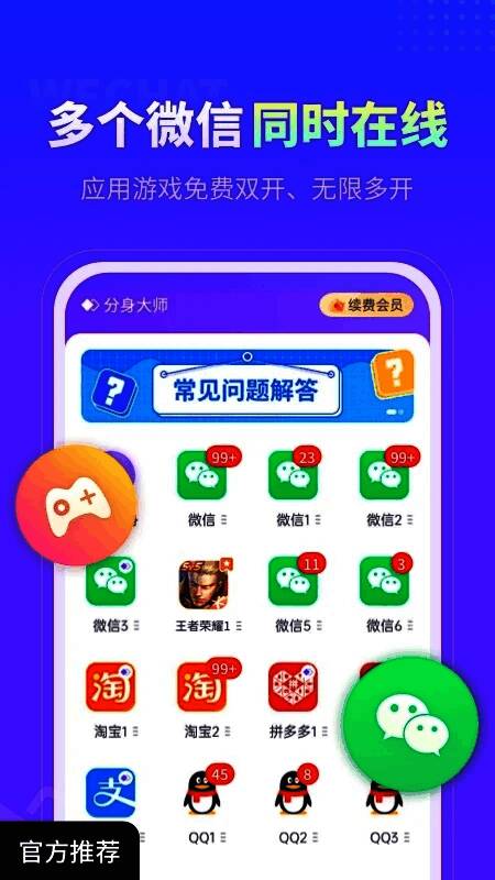 1.多应用:支持几乎所有应用程序的多个在线帐户,包括微信QQ、微博、淘宝、抖音等,让生活和工作互不干扰。