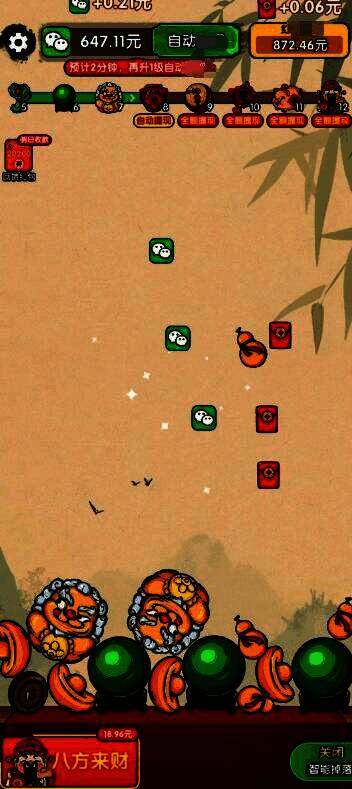 财运高照 游戏赚钱是一款有趣的综合玩法红包游戏。只需点击上面的项目,两个相同的项目就会碰撞以合成更高级别的项目。游戏还具有自动下降功能。打开后,物品会自动掉落,您可以随时打开幸运红包,获得很多红包。合成物品的等级越高,您获得的奖励就越多。在游戏中,玩家将面临许多具有挑战性的关卡,只要他们成功完成了相应的关卡,他们就可以获得丰厚的收益。游戏操作简单,适合任何年龄段的玩家。完成的任务越多,福利就越多。在这里,福利支持提款,因此完成财富红包版可以作为零用钱的小游戏!