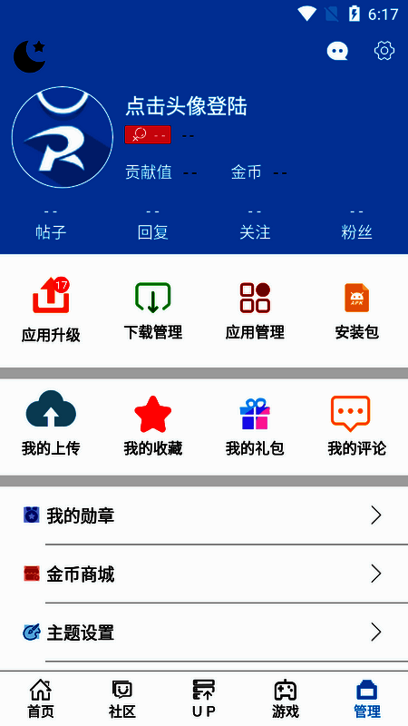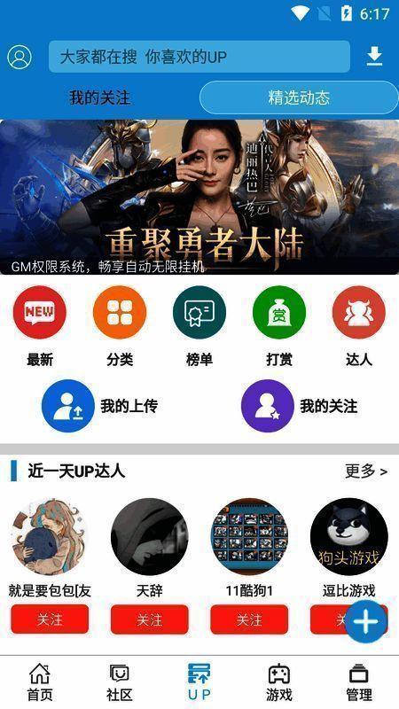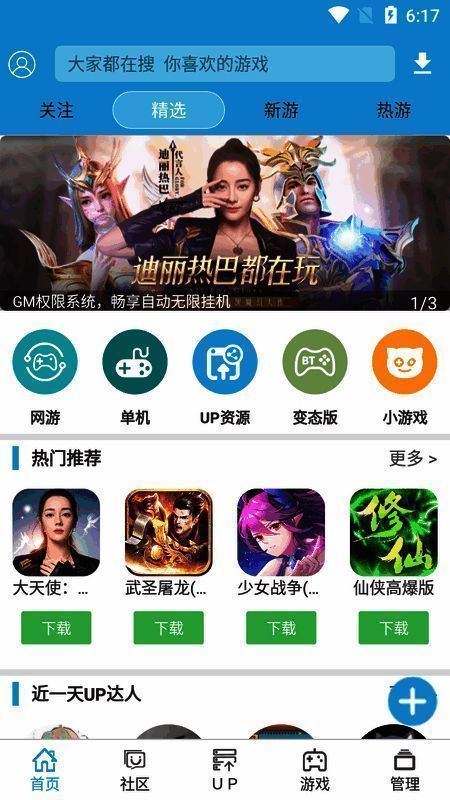 4、如果是想要找到自己想要开挂游戏的应用的话,那必须也是点击“up”功能按钮;