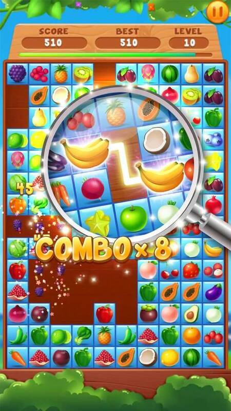玩家在每一关要找出相同水果,点击连接消除,连接路径不能被水果或障碍物阻挡。游戏里水果图标多样,颜色和形状各不相同,玩家需在复杂布局中找到合适配对。每关都有计时限制,玩家要尽快完成消除任务以获更高分数和更多奖励。随着游戏进展,新水果种类和更复杂布局会出现,玩家需更精准快速地判断才能通关。