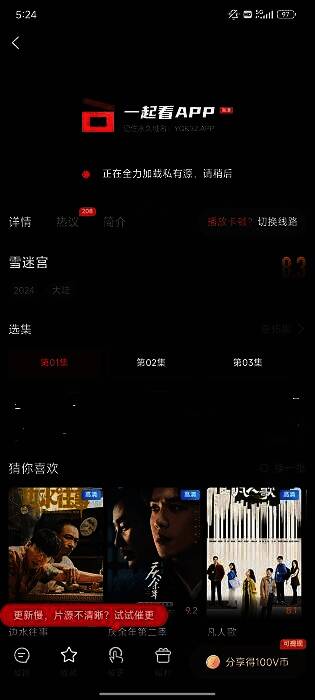 用户不仅可以享受电影和电视剧带来的乐趣,还可以结识志同道合的朋友,扩大自己的社交圈,丰富自己的观看体验。无需支付高昂的票价或额外费用,只需连接互联网即可享受丰富的影视资源,实现了高效、经济的观影方式。不受影院排期和时间限制,随时随地打开app,自由选择和观看感兴趣的电影,享受便捷的观影体验。支持手机、电脑等多种设备的无缝连接,确保用户在任何设备上都能享受一致的高质量观看体验。提供多种画质选择,确保每一帧都清晰细腻,让用户即使在家中也能体验到影院级的视觉享受。