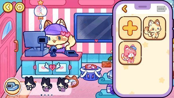 游戏提供多种猫猫,可观看视频招募新猫,自由为猫猫穿搭装备,保存后继续经营探索。