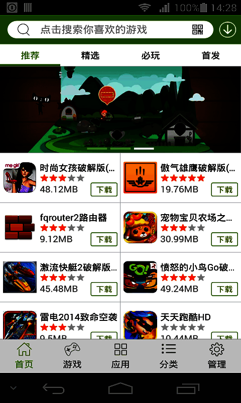 2、分类清晰:游戏资源按不同类型清晰分类,方便用户依喜好和需求快速查找游戏。