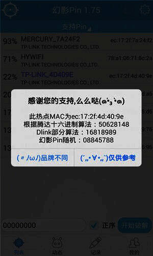 4. 软件通过运行pin获取WiFi密码,无论密码难度,但此过程需手机获得root权限。