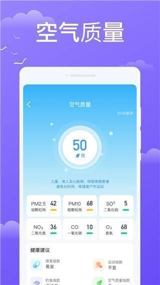 2. 空气质量监测:展示未来空气质量预报,守护健康。
