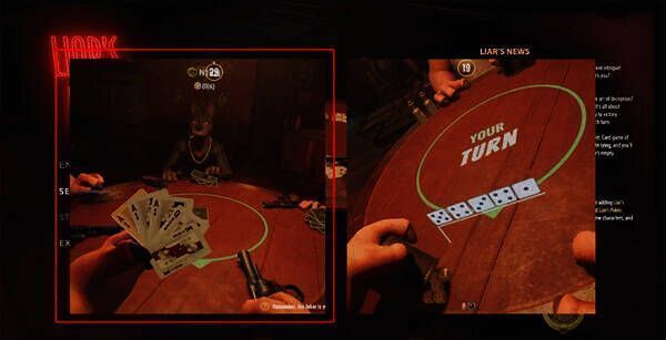 玩家需通过对话和观察来拆穿他人谎言或完成自身任务。游戏支持多人模式,玩家既能和朋友组队,也能和其他玩家对战。每一局中,玩家通过骰子和纸牌游戏竞争,考验语言技巧和策略。酒吧场景设计与游戏机制共同营造出紧张悬疑的氛围。