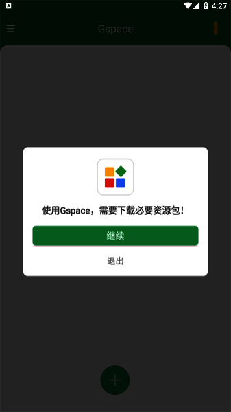 1、在本站下载安装gspace,点击软件头像,需先下载必要资源包。
