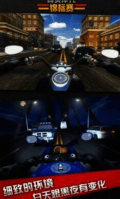 2. 自由驾驶模式:玩家可在游戏街道自由驾驶摩托,感受超速快感。
