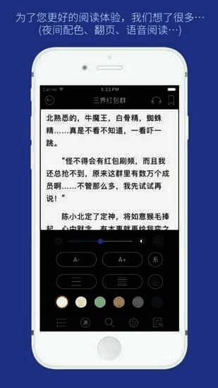- 用户能自主设置阅读环境,如字体、背景颜色等。